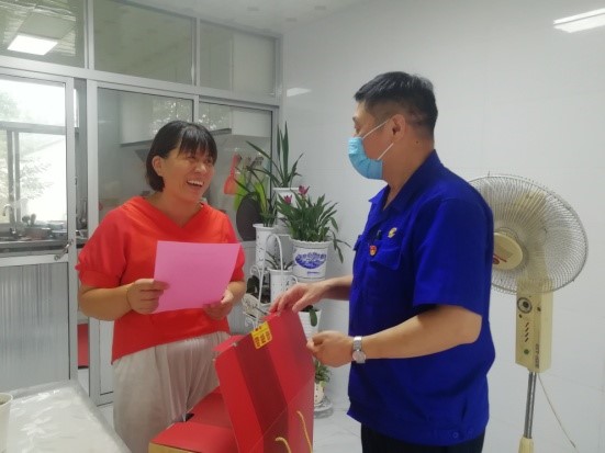 8月10日下午,公司工會主席兼政工部部長鄧戈冒雨前往公司派出的抗疫志愿者部分家庭,給他們送去新工集團的慰問品和慰問信,也帶去了公司黨委的慰問和謝意,對他們給予子女參加抗疫工作的支持表示感謝。